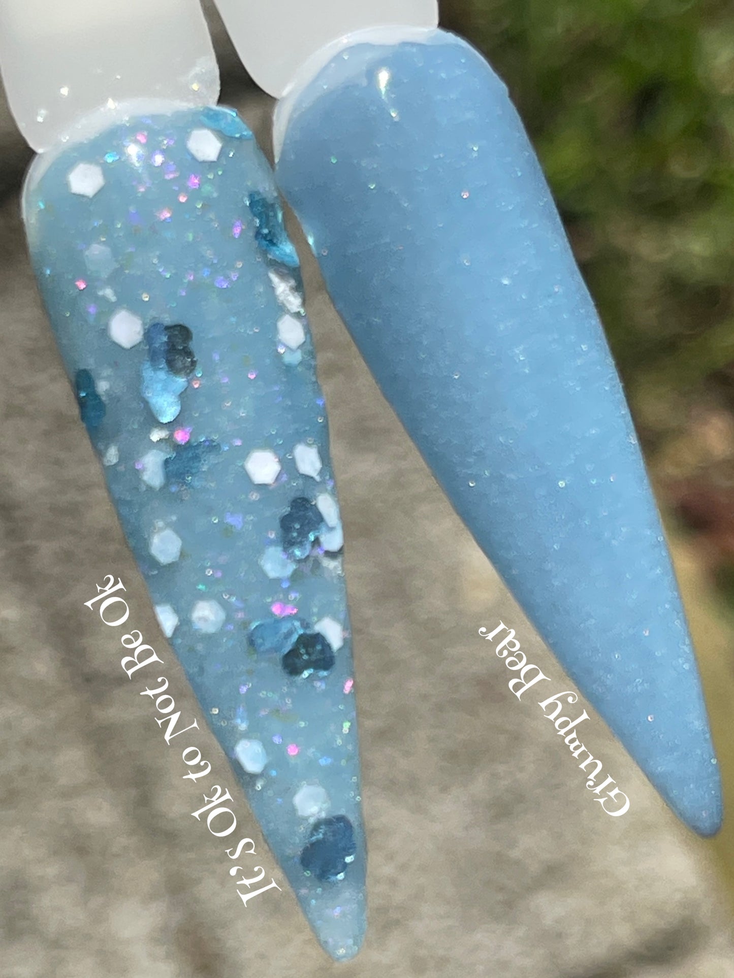 Bedtime Bear is a blue base with green and gold sparkly undertones