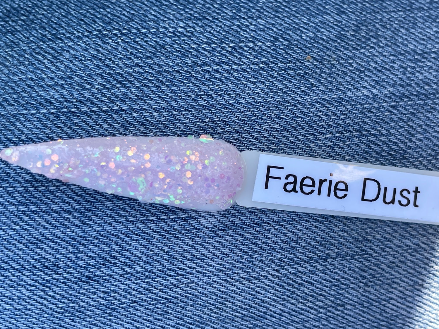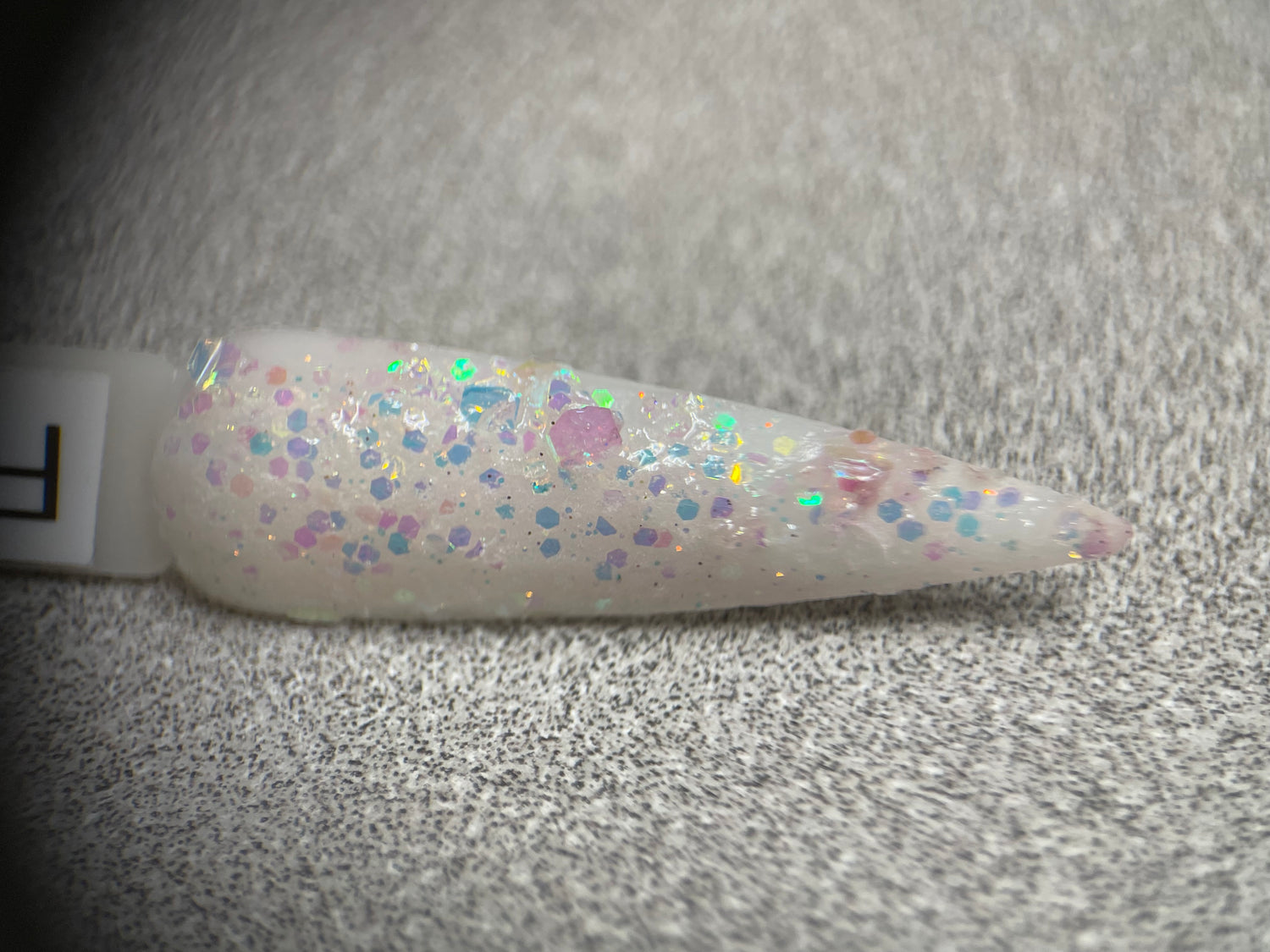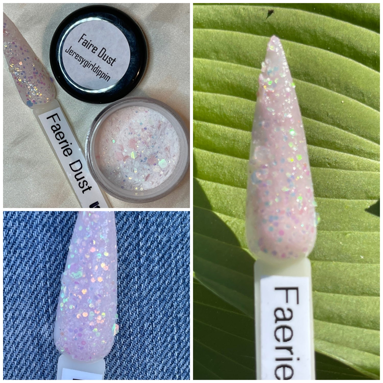 A classy white glittery dip with slight shift to pink in sun and uv light also glows!