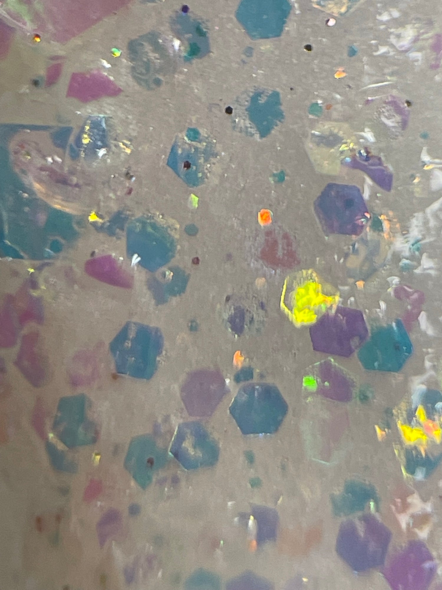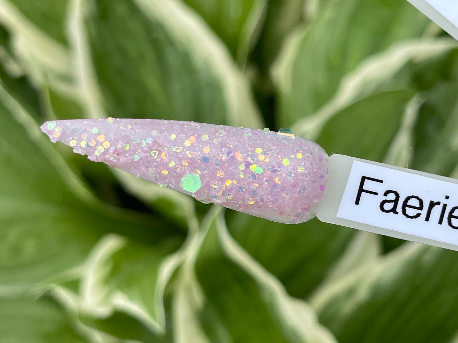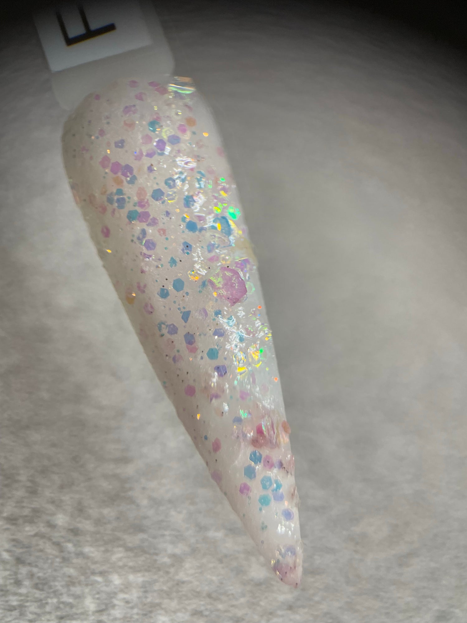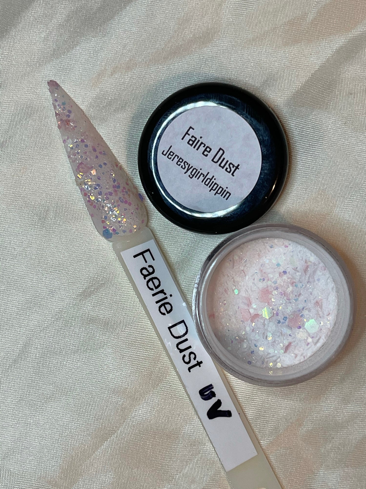 A classy white glittery dip with slight shift to pink in sun and uv light also glows!