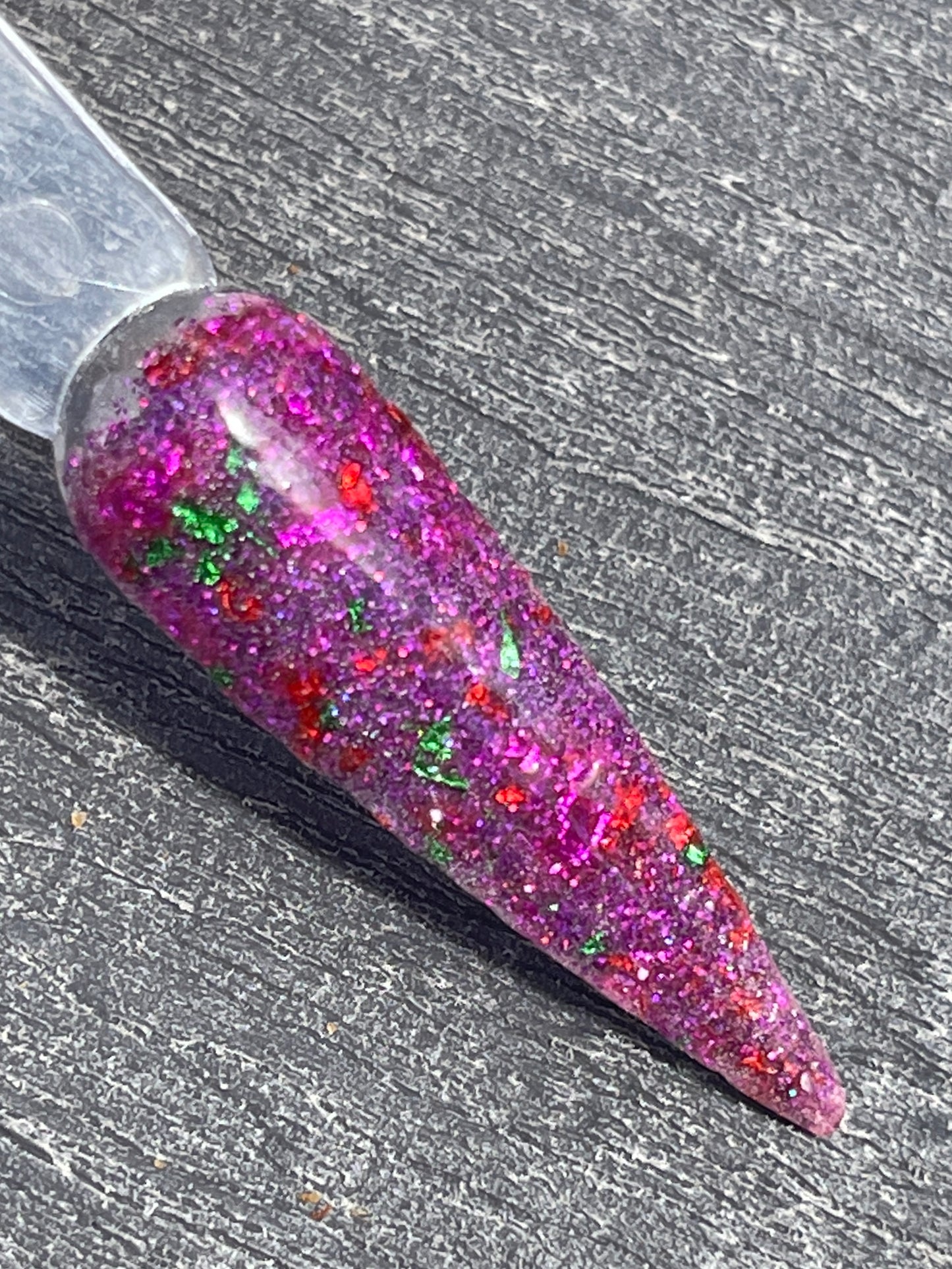Ghoul friend is a fine purple holographic glitter with red and green foil flakes