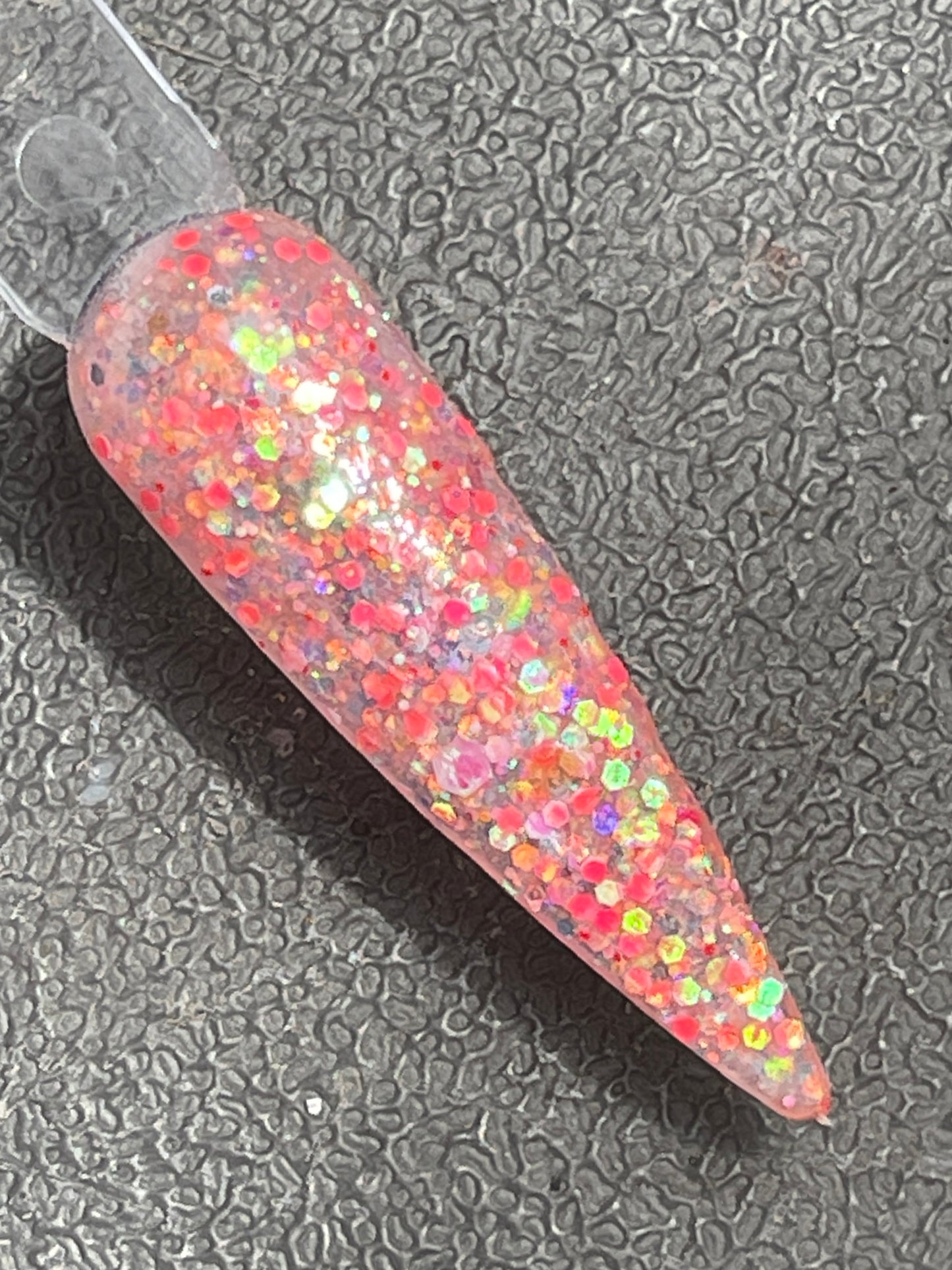 Fine color shifting and Dark coral chunky glitter in a clear base