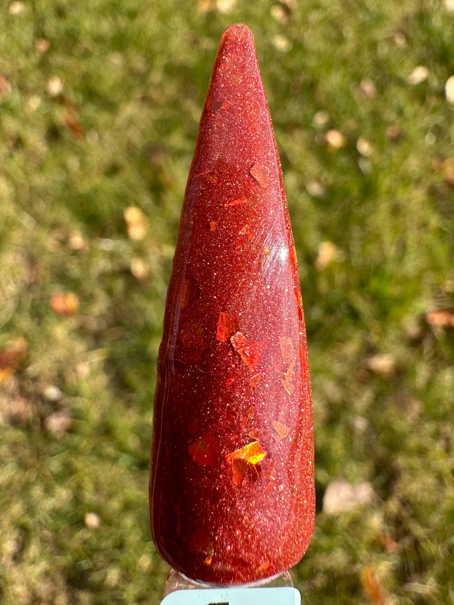 Hello Pumpkin Is a red/orange base with triangle copper glitter