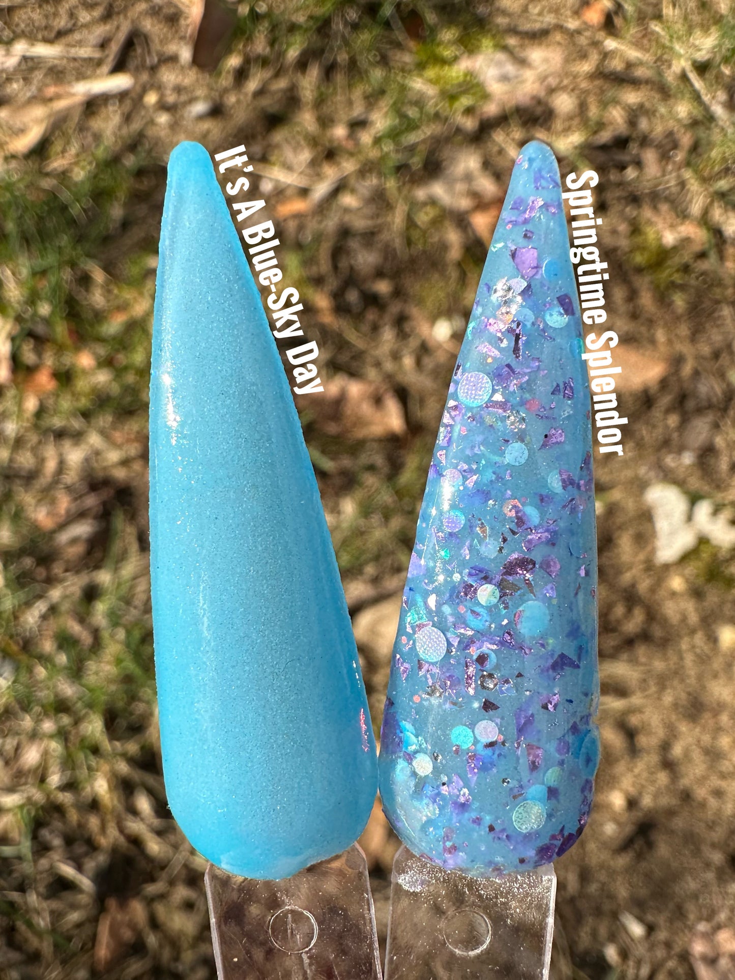 It’s A Blue-Sky Day Is a light blue that glows aqua when charged by uv