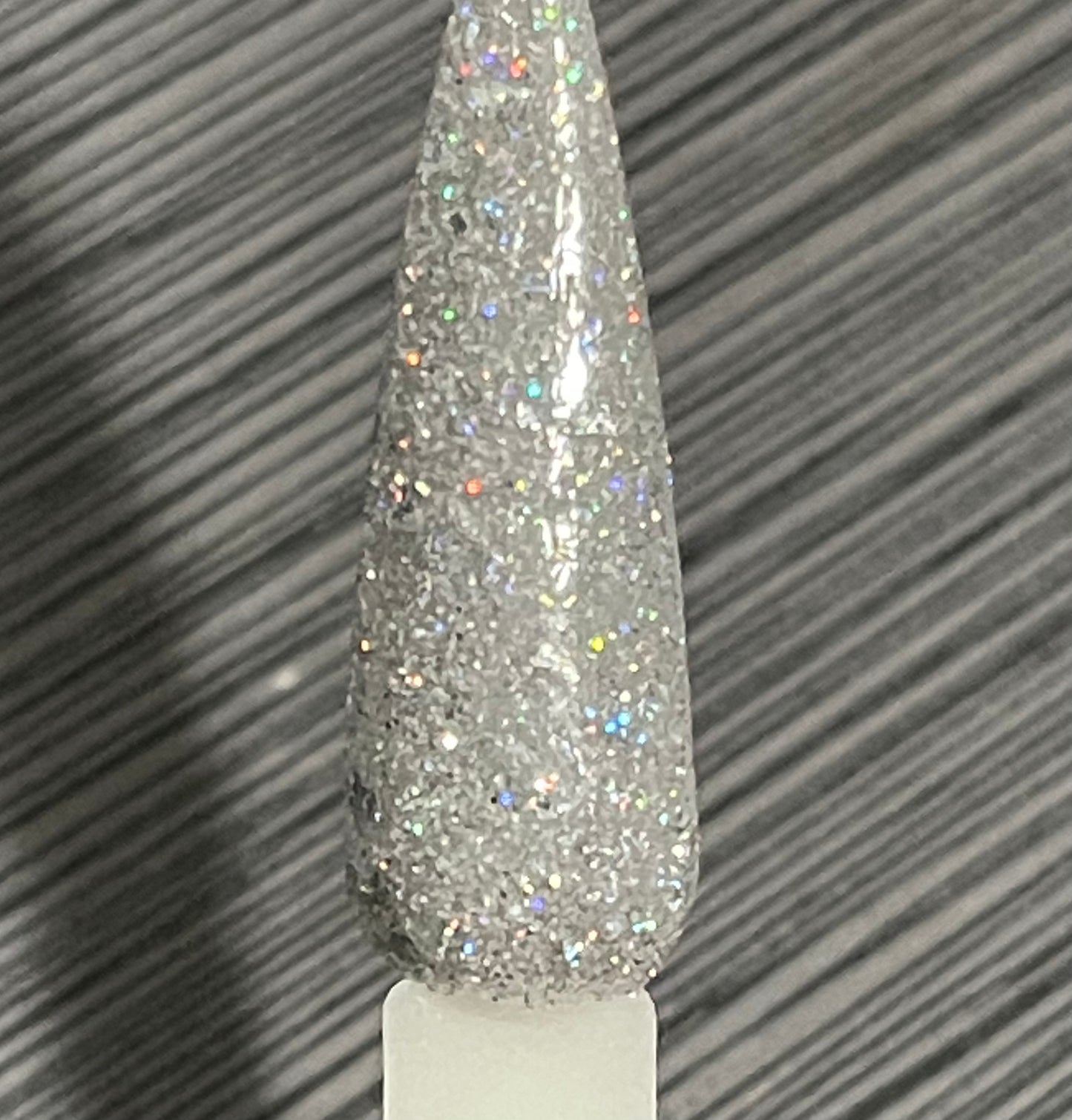 Kiss Last Year Goodbye Is a fine holographic silver glitter with silver flakes