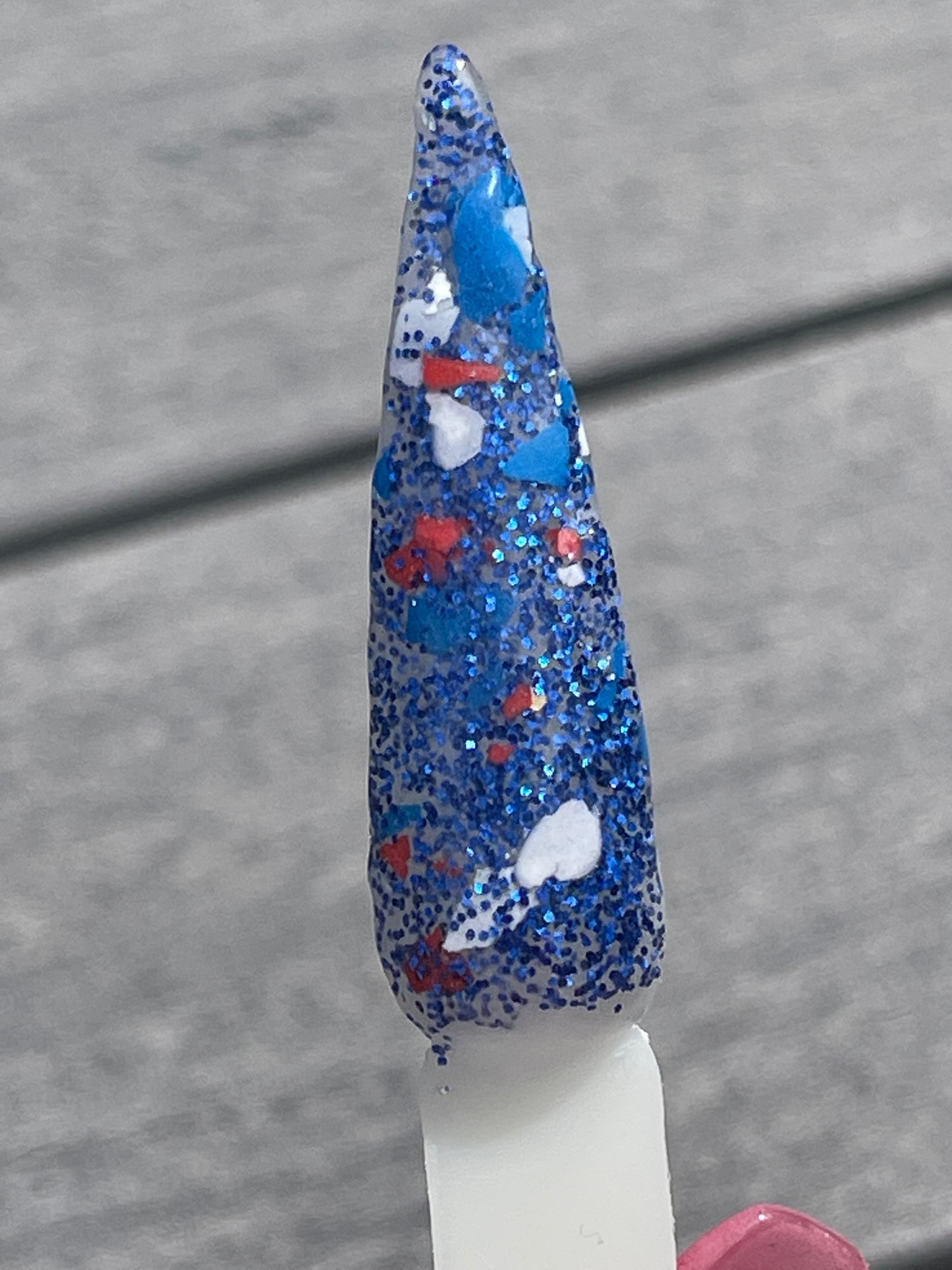 Made In America is a blue fine glitter with red,white and blue cami glitter