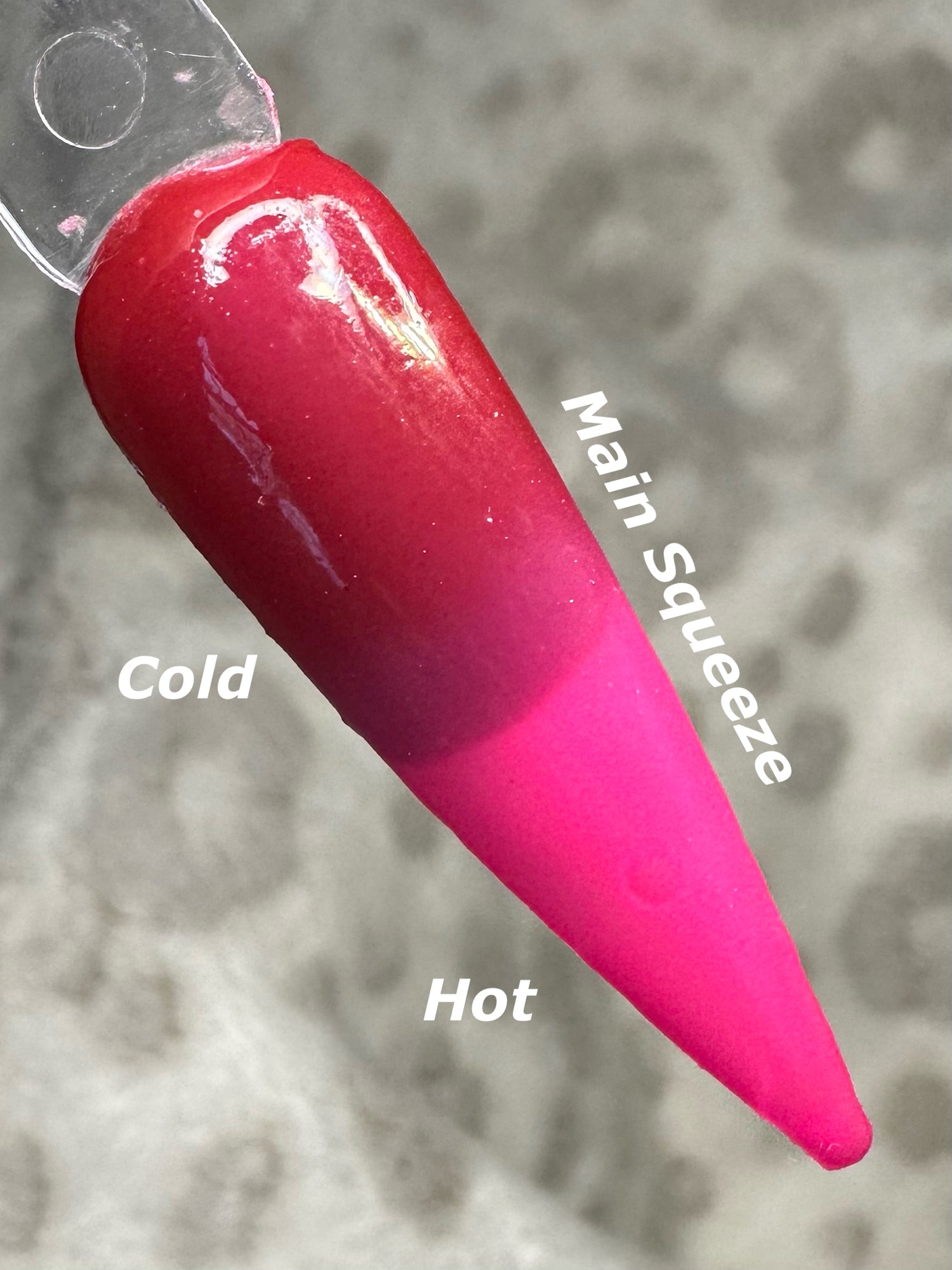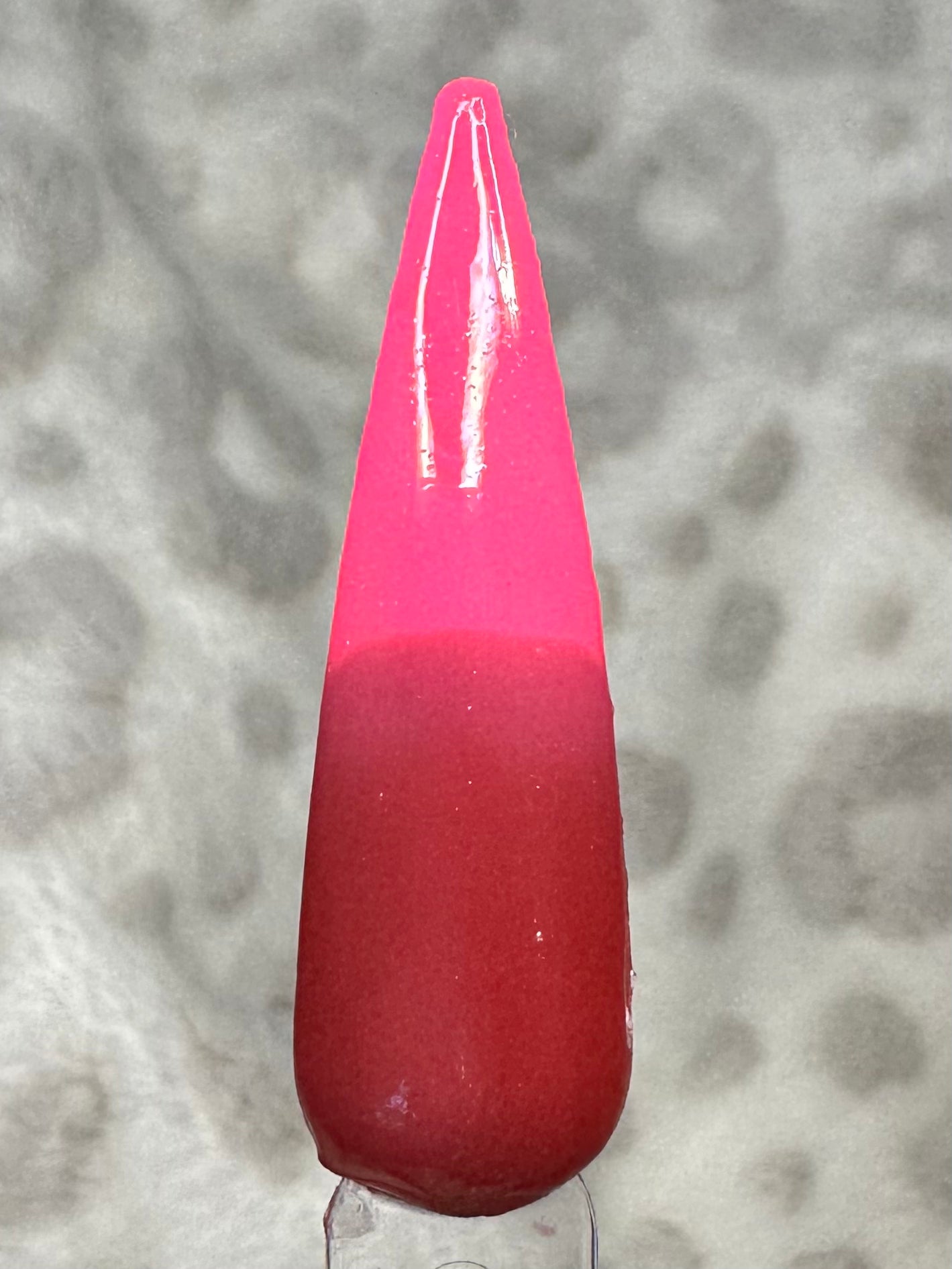 is a heat activated triple thermal that changes from red/fuchsia/hot pink
