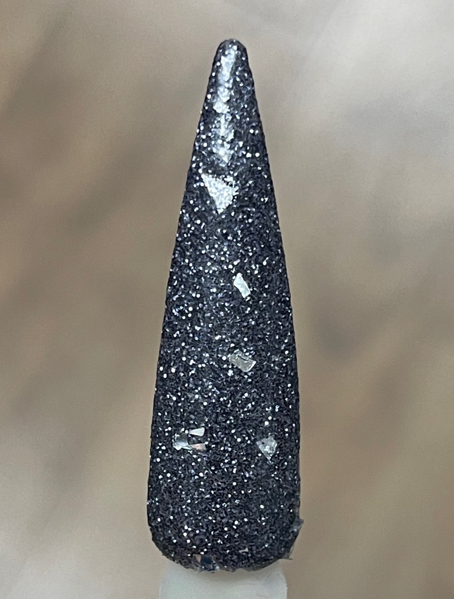 Mile High Club is a clear base with fine metallic grey glitter and silver shards.