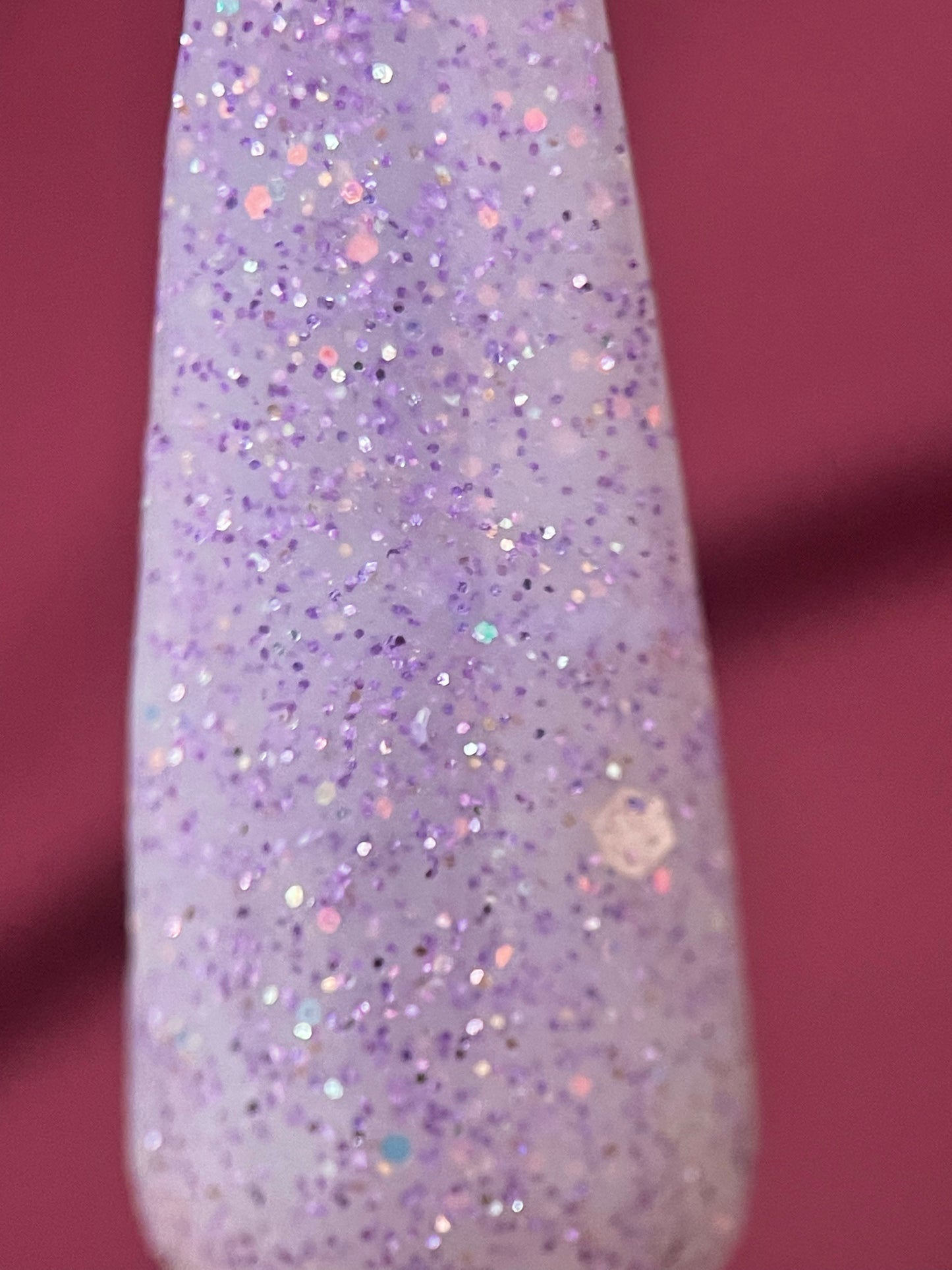 Secret Admirer is a light lavender purple thermal that changes to a dark plum when cold. It also have fine purple glitters throughout