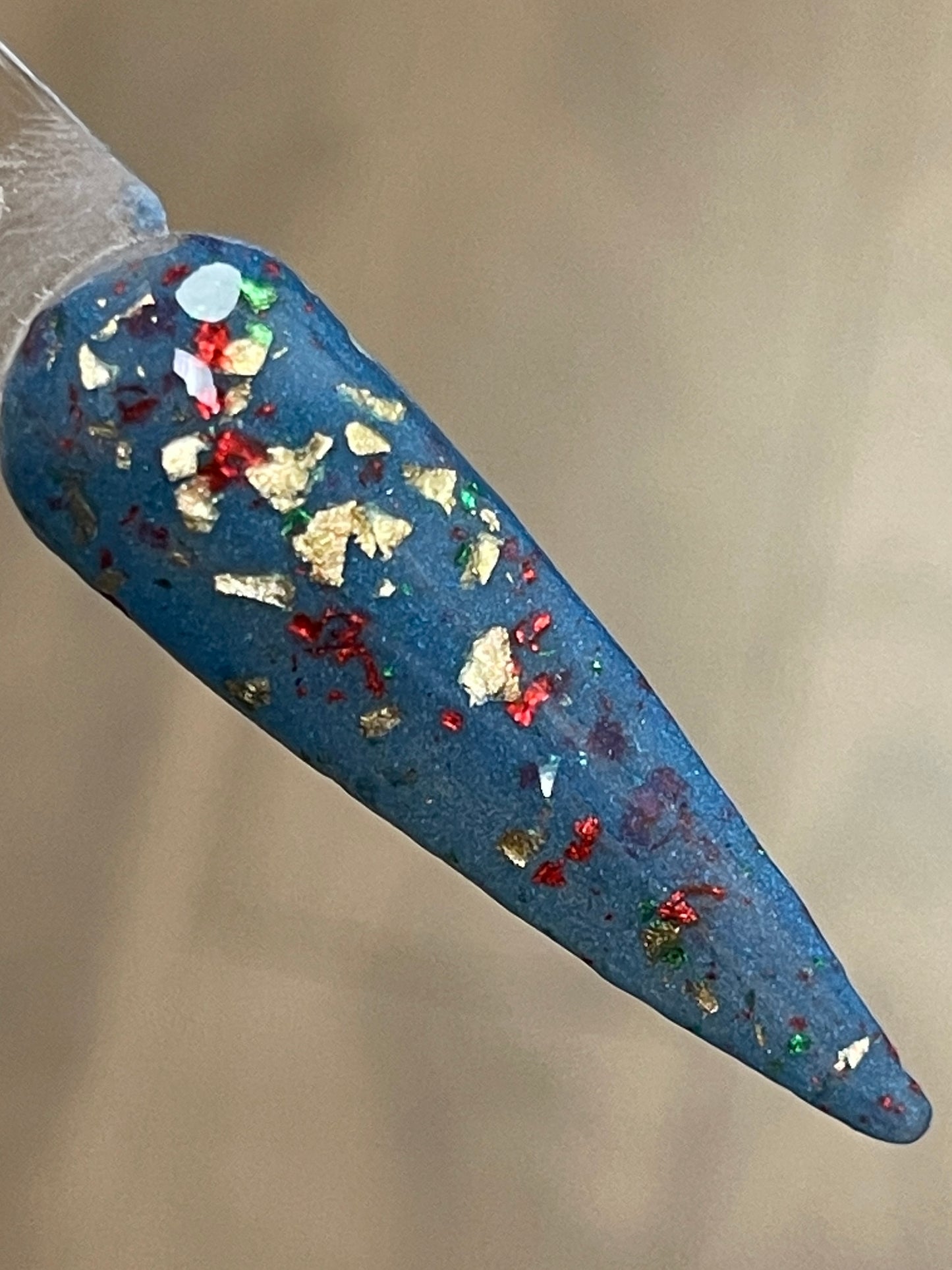 Sir Didymus is a royal blue base with Gold,red, and green flakes