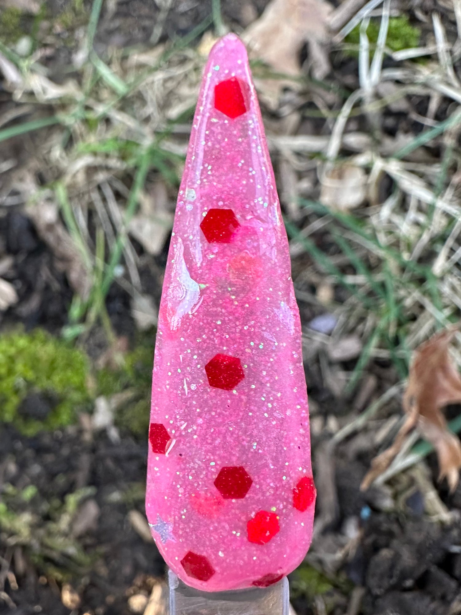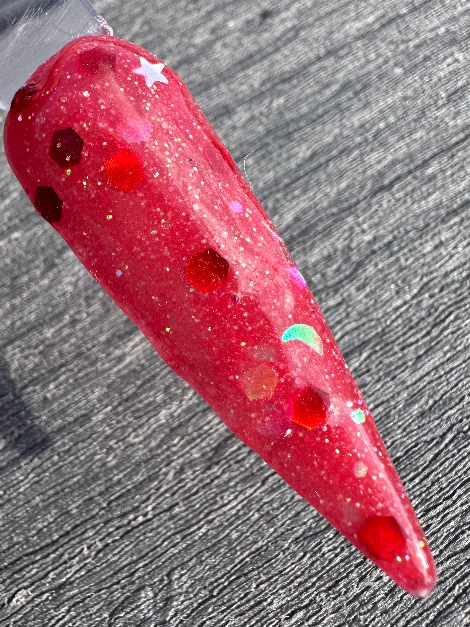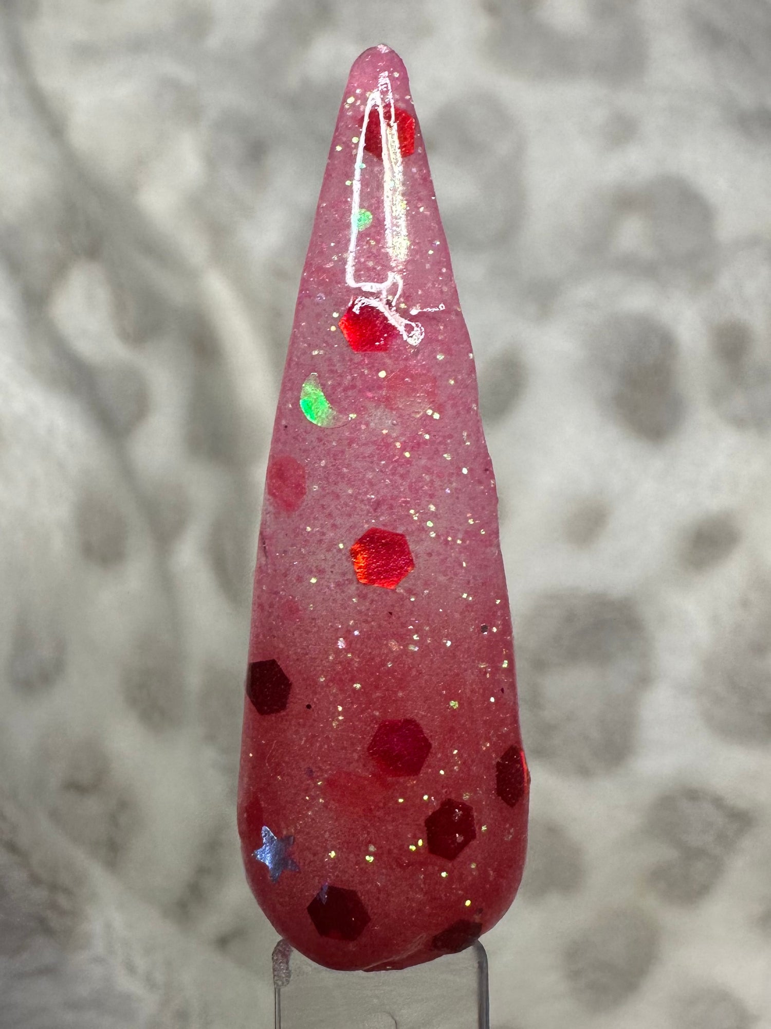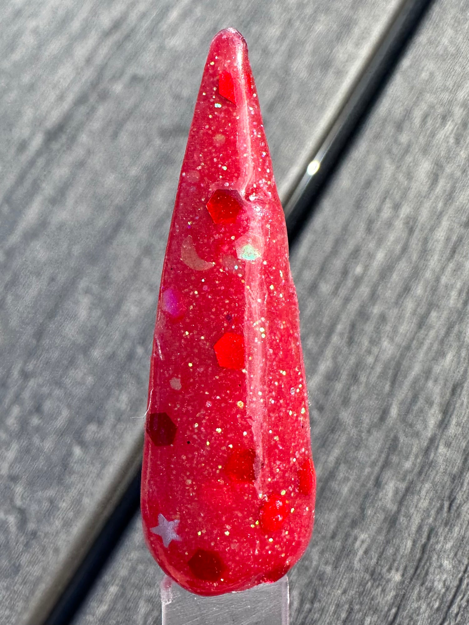 Cupid Approved is a heat activated triple thermal that changes from Scarlet/Red/Pink with chunky red glitter, stars and fine color shifting glitter.
