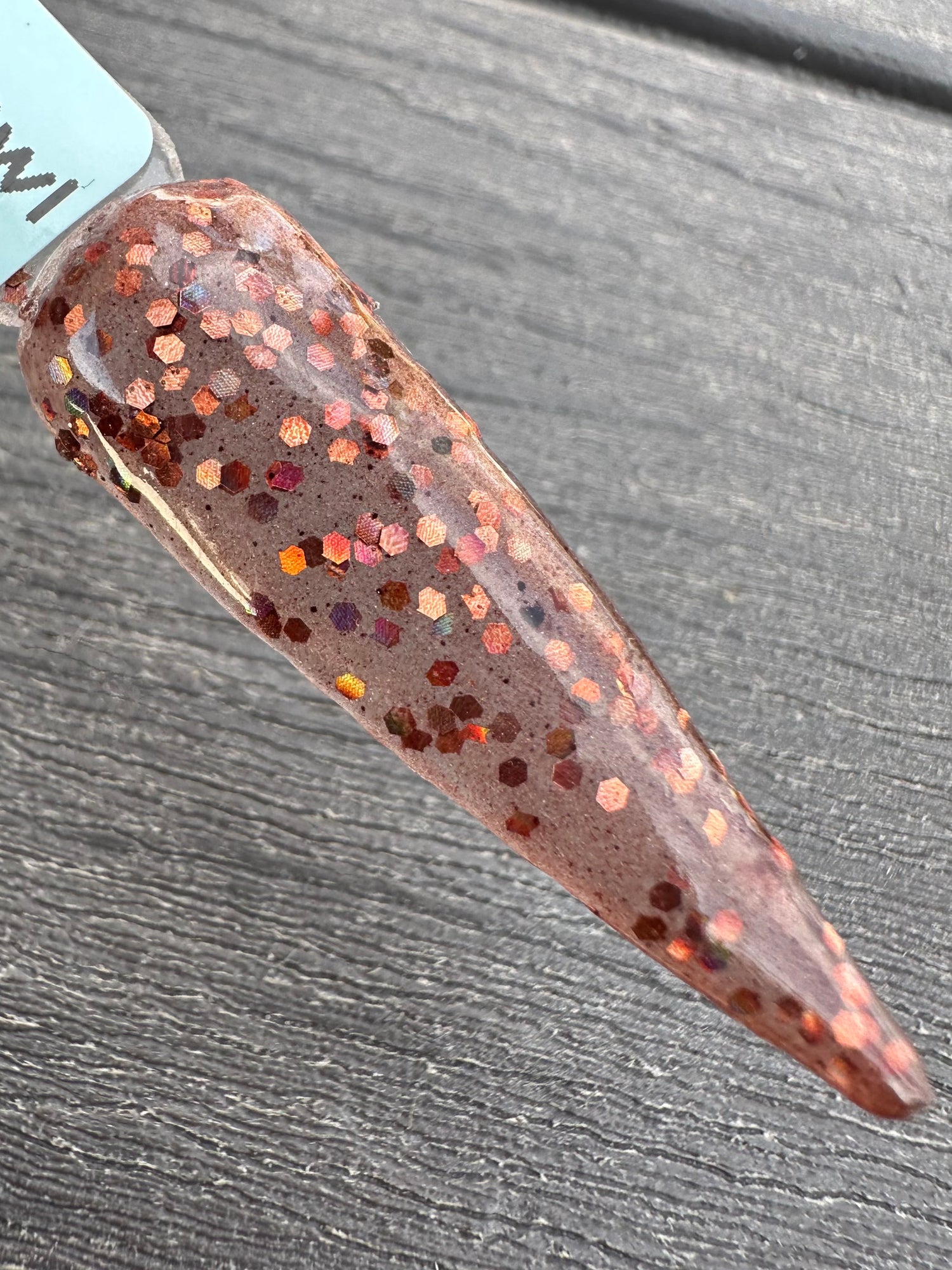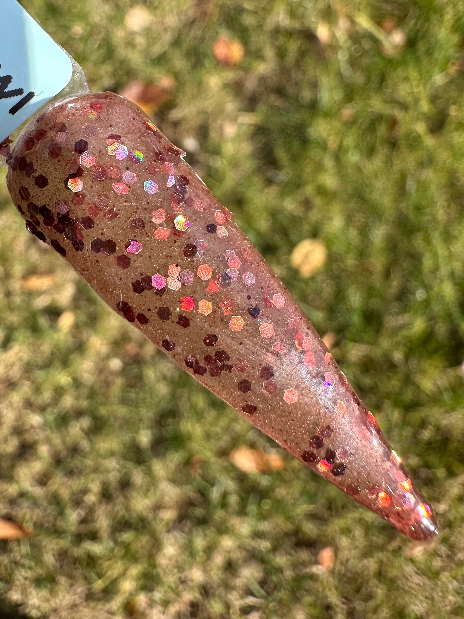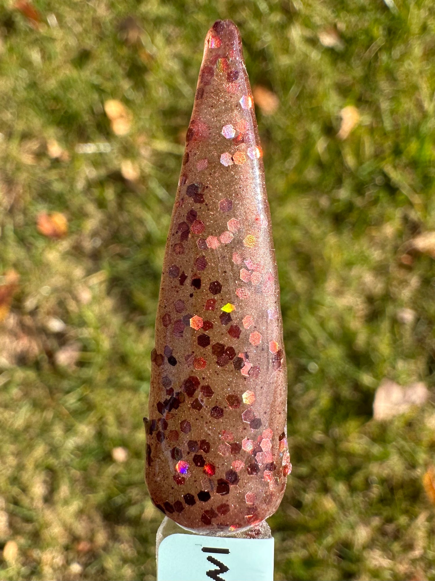 Night owl is a temperature changer that changes from brown to colorless with heat loaded with brown color shifting glitter