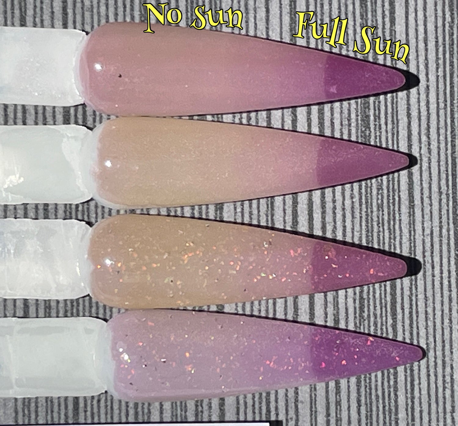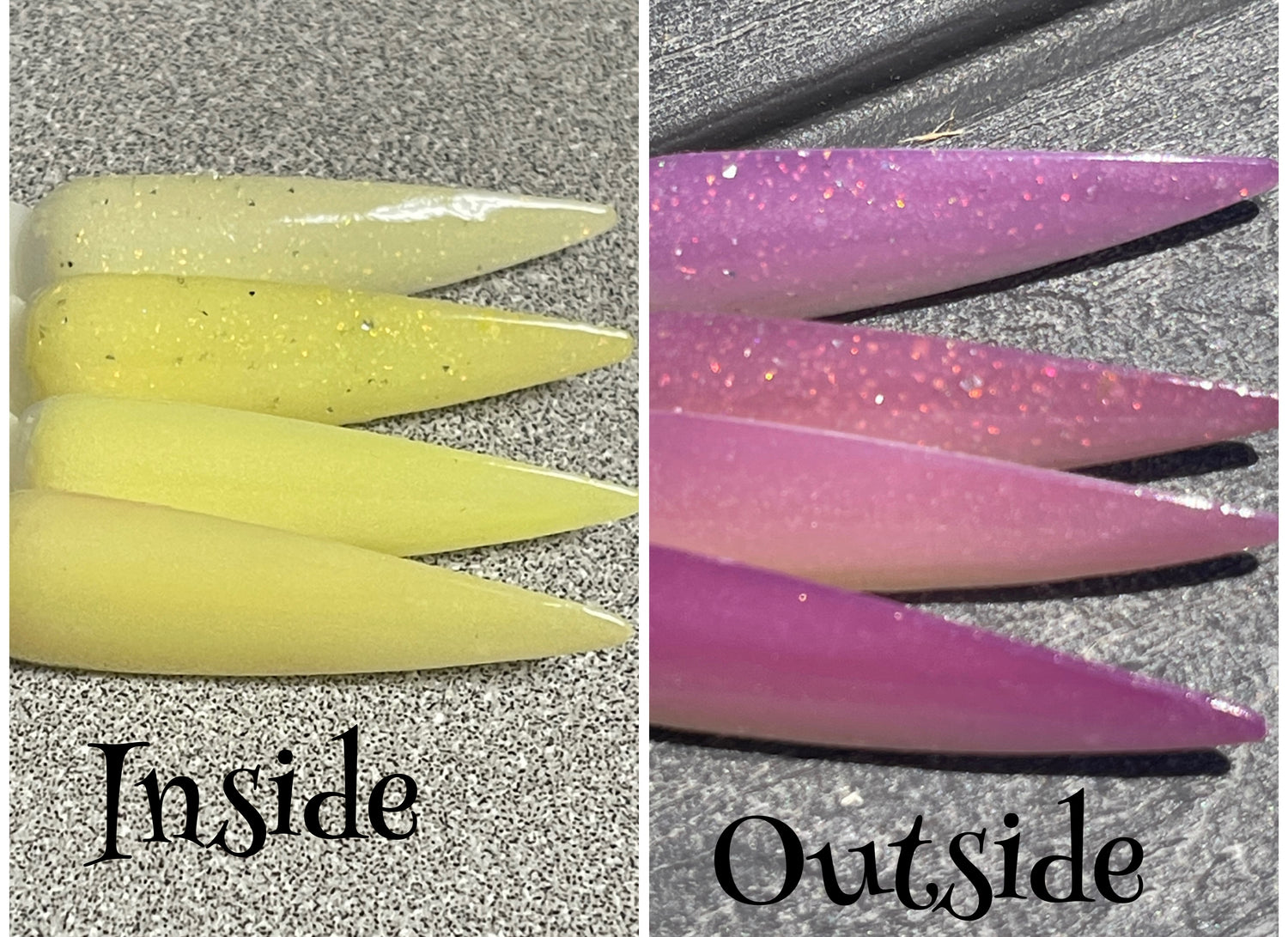 •All thermals and UV dips are always swatched with dip liquids